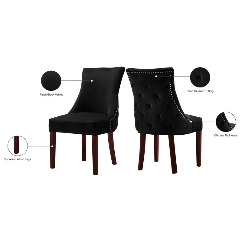 Want to spruce up your dining space? This contemporary chair does the trick, and then some. Velvet upholstery envelopes the Splendor’s simple, contoured silhouette, making it both soft to the touch and easy on the eyes. A curved, high back and plush-cushioned seat provide support in all the right places. Plus, deep tufting and chrome nailheads adorn the back, letting it stand out at any angle. Not only does it tie any room together, it’s also a breeze to put together—all you have to do is attach the legs.
