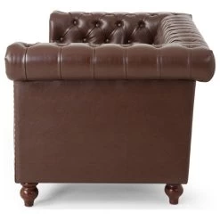 Grace your home with refinement and comfort with a single addition. This classic loveseat is the ideal addition to any interior space with its traditional design and elegant elements such as beautifully turned legs and outstanding Greek key arms. Featuring smooth upholstery, this loveseat stands as a streamlined statement piece that can change the whole flow of your living room, creating an open, clean space. Finished with a gorgeous nailhead trim and lovely button-tufted stitching, our loveseat provides a sophisticated touch to any room.