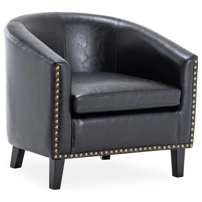 Add stylish extra seating with this Belleze faux-leather club chair. Boasting a sophisticated design, this contemporary tub chair features flared arms to provide your guests with a sturdy, comfortable place to rest their arms throughout their visit. The flared legs of the piece add an additional layer of style to the chair and make it easy for you to clean underneath it. Add a touch of elegance to any room with this beautiful accent chair from Belleze. With top stitching for durability, foam padding for comfort and solid wood legs for strength, this chair is sure to be a family favorite.