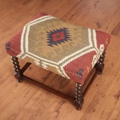 SKU: AG91E 48803 Category: Footstools & Ottomans Tags: Barley twist legs, Kilim upholstery, Nailhead trim, Sturdy solid wood