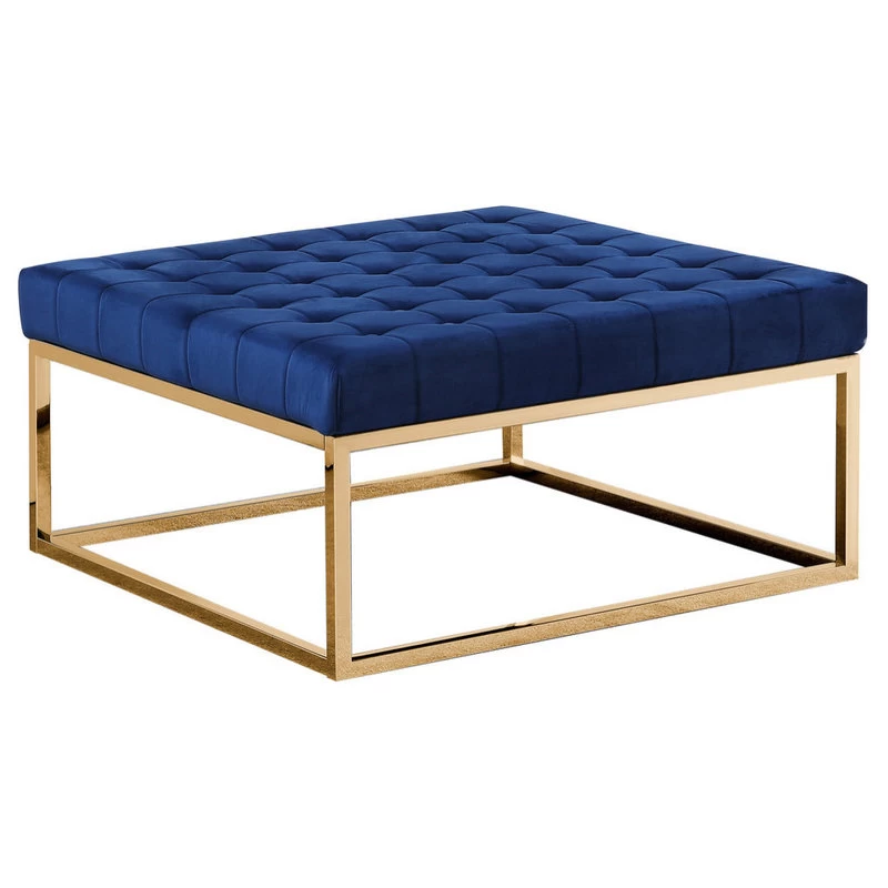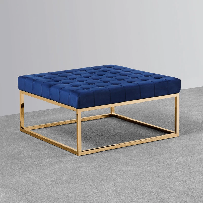 This contemporary and versatile ottoman coffee table is upholstered in velvet fabric and made of manufactured wood frame. The base is in a gold finish made of metal. With a large surface to use as a coffee table or relax your feet, this piece is an essential piece of furniture to your living room space. The eye catching gold base is what makes this ottoman coffee table special.