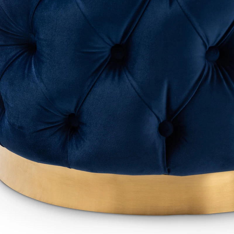 Baxton Studio Valeria Glam Royal Blue Velvet Fabric Upholstered Gold-Finished Button Tufted OttomanModern glamour meets comfort in the Valeria ottoman. Constructed from sturdy plywood and stainless steel, the Valeria is padded with foam and upholstered in a rich velvet fabric that is soft to the touch. A striking brushed-gold finish on the base adds a touch of luxury, while all-over button tufting highlights the subtle sheen of the velvet. Use this versatile piece as a footstool or as extra seating for guests. The Valeria ottoman is made in China and will arrive fully assembled.