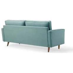 Update your home or apartment with the mid-century style and modern-day convenience of Valour. This comfortable living room sofa features a tailored profile with elegant biscuit tufting and two bolster pillows. Covered in soft, stain-resistant performance velvet upholstery, Valour has dense foam padding, individually wrapped innerspring pocket coils, and sinuous spring support for a comprehensive seating experience. This luxe modern sofa comes with walnut-stained wood legs with non-marking foot caps and supports up to 881 lbs. Say goodbye to the days of hauling heavy furniture. This tufted sofa ships in a portable box for easy maneuvering.