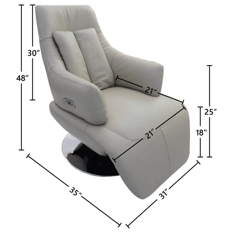 The minimalist, modern design of the Vegas powered recliner shows just how sleek luxury furniture can get, without sacrificing an ounce of comfort. Upholstered in supple top grain leather and matched sides, the built in pillows and swooping arms offer a relaxing embrace. With the touch of a button, you can adjust the recline and the headrest independently to find your ideal position. A perfect fit for any modern home, or a great way to add a high-tech flair to your TV room or den.