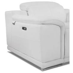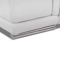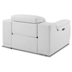 Enjoy modern style and top-notch relaxation with this Veneto White Leather Reclining Chair. This beautiful Veneto Chair has comfortable seat cushions, plush back and headrest, pillow arms, and White Genuine Leather upholstery. The elegant design and exquisite cushioning provide perfect comfort that will keep you cozy, and the extra padded arms add the perfect finishing touch. Veneto Chair will transform your living room with its modern design. It displays an aesthetically pleasant linear design with chrome accents to foster sophistication. A great way to convey simple luxury in any room. Mindfully designed with gently arms, and plush high density seat cushions for maximum comfort, this masterpiece is a delightfully distinguished mix of functionality and style. The chrome legs effortlessly elevate any room with a touch of contemporary design.