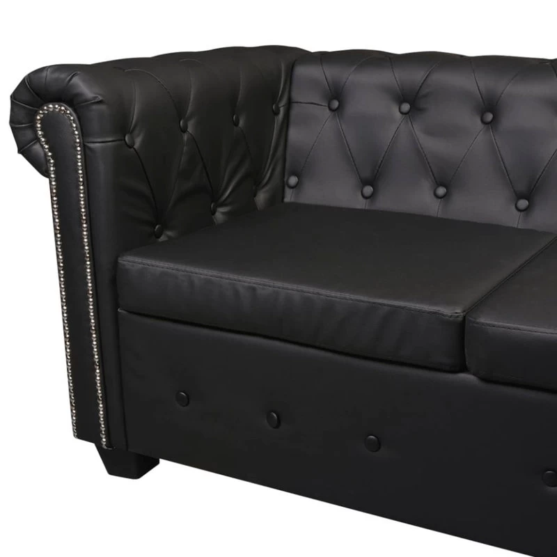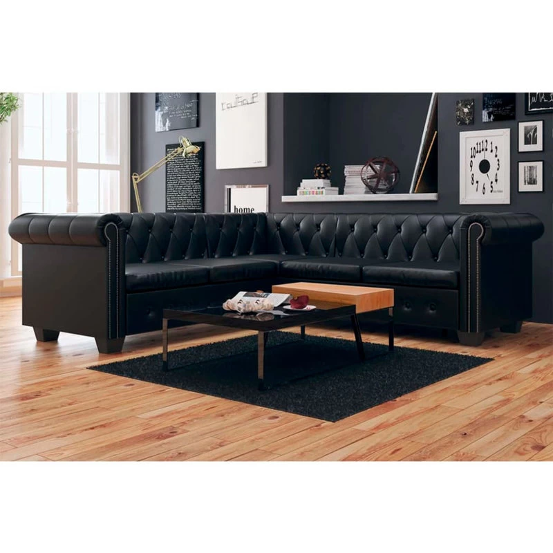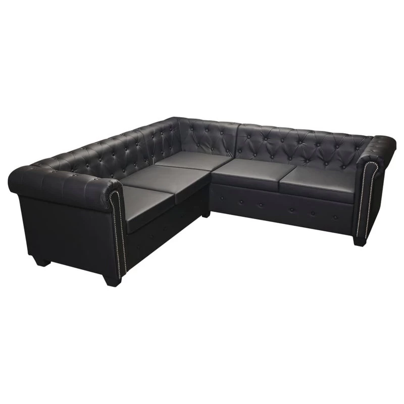This Chesterfield corner sofa is the perfect blend of comfort and sophistication and will make a great addition to any home or office. This 5-seater sofa, with its tufted and studded detailing and gracefully curved arms, will add a touch of luxury, class and style to any interior. The thickly padded seat is highly comfortable, while the elegant structure is sturdy and durable. The quality faux leather upholstery is easy to clean and hard-wearing. Assembly is very easy.