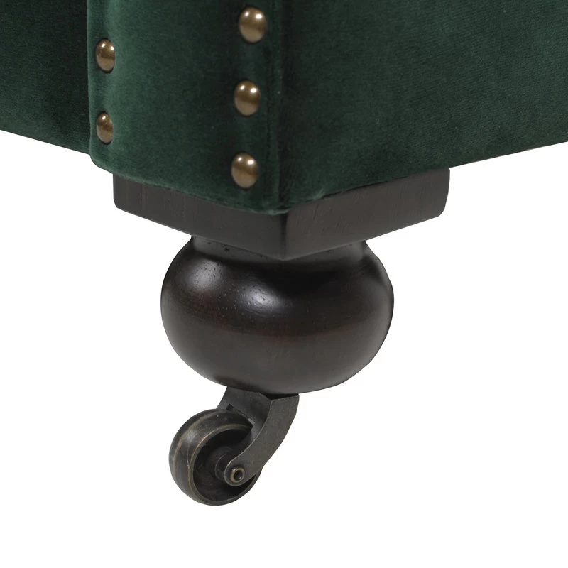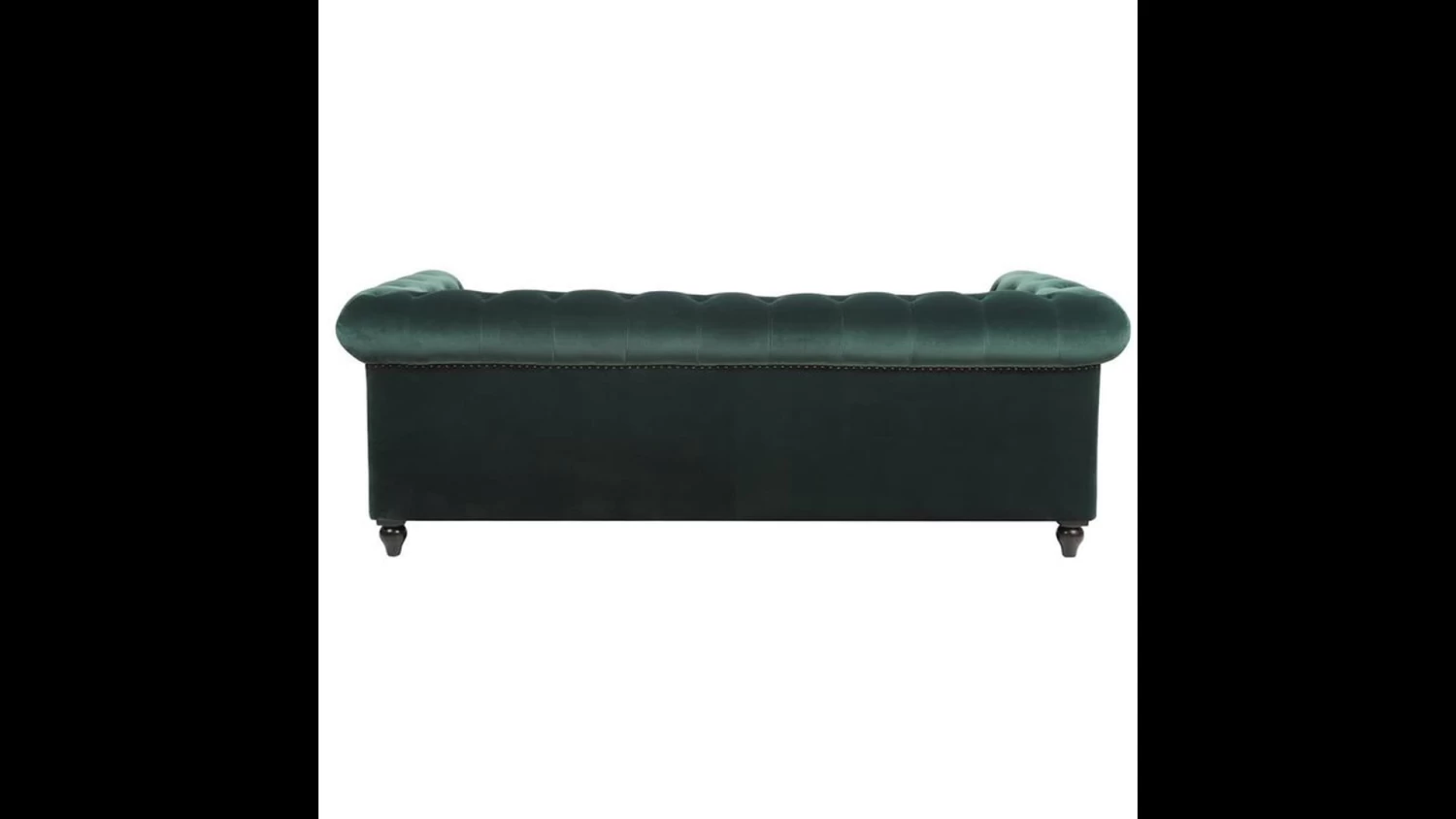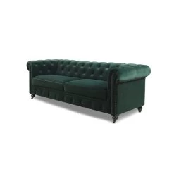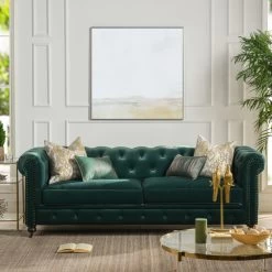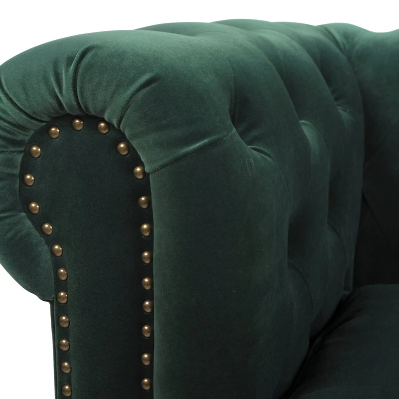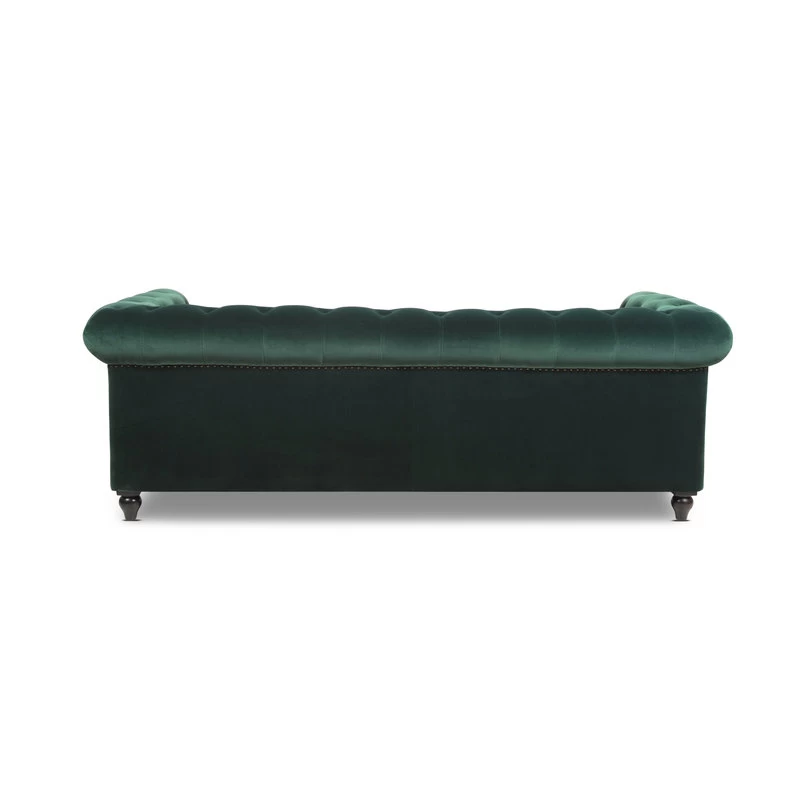 - Classic Chesterfield silhouette with rounded arms and back and tall, shelter arms