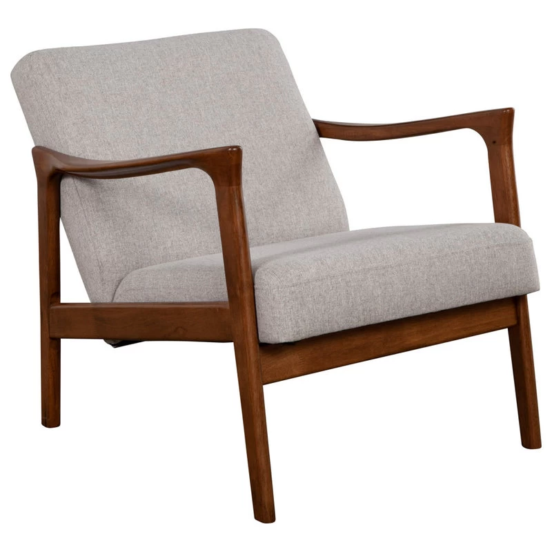 Baxton Studio Andrea Mid-Century Modern Grayish Beige Upholstered Wooden Armchair, Set Of 2